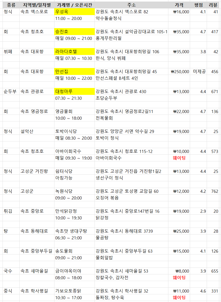 우선 강원도 속초 하면