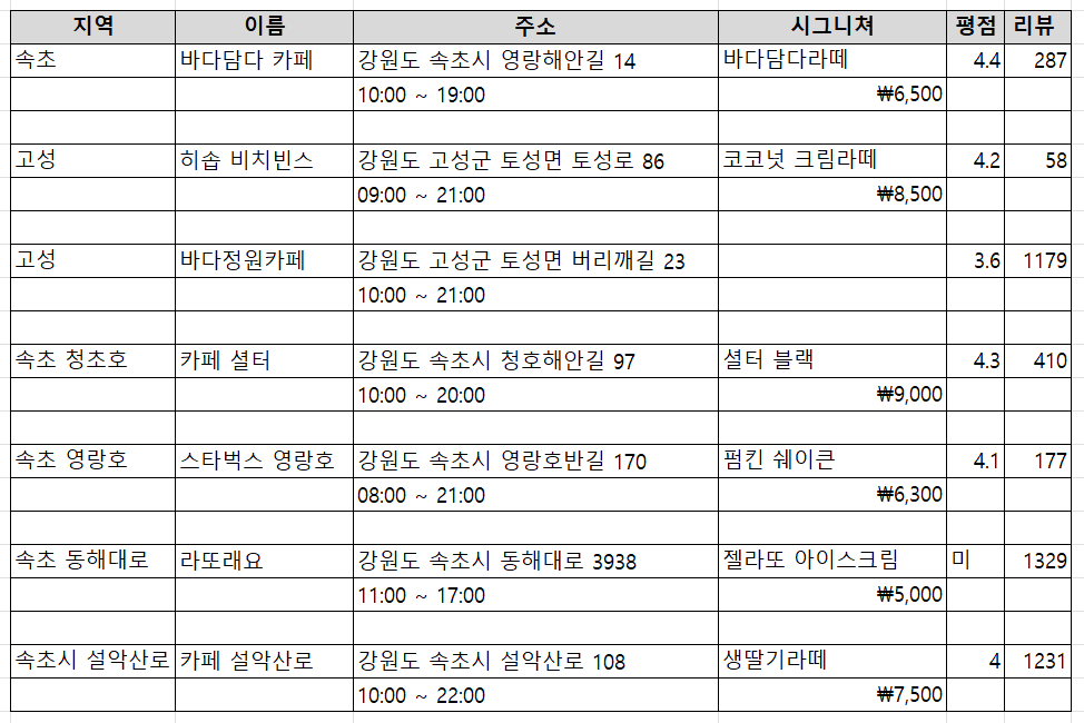 카페 투어를 하다보니 일정을 이렇게 짰다.