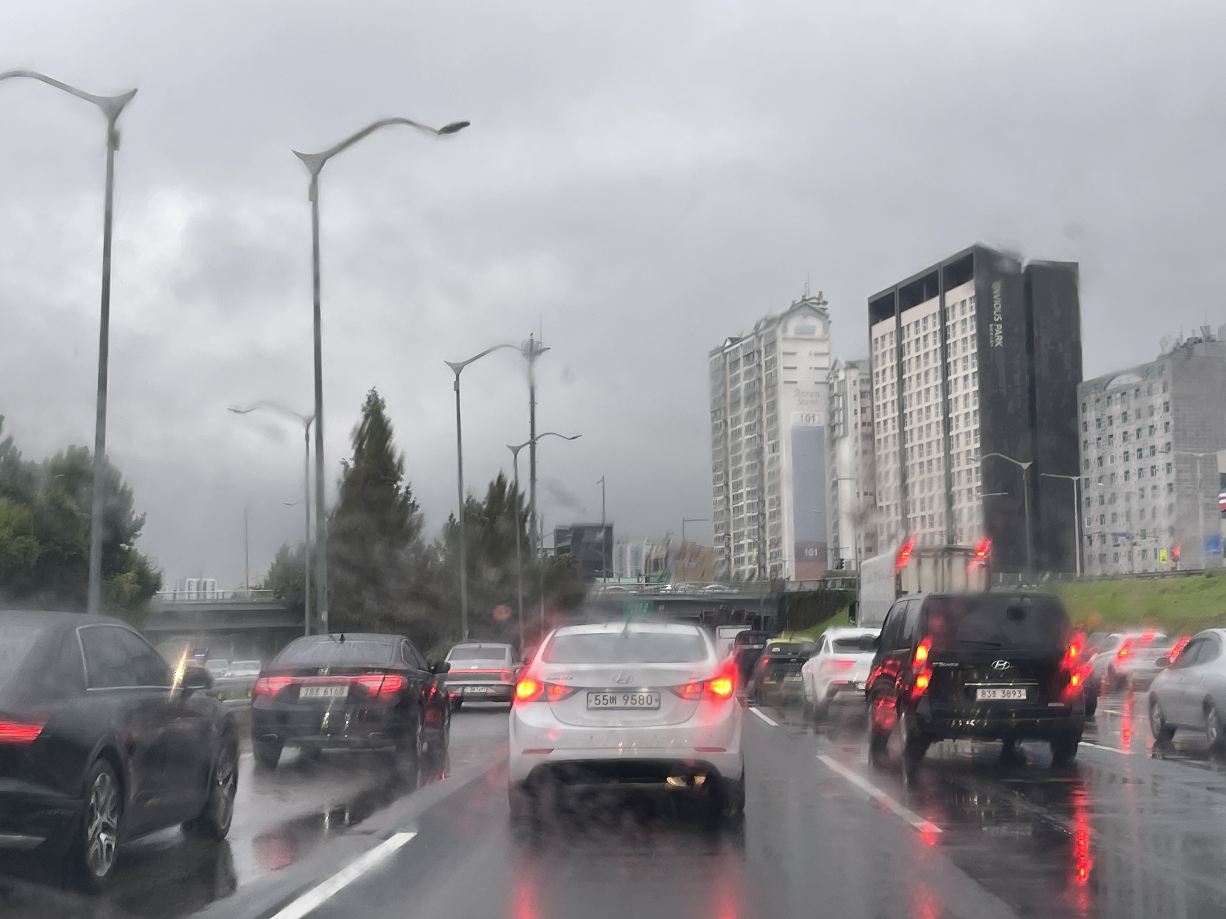빗 속에 달리니까 어찌나 긴장하면서 고단한지