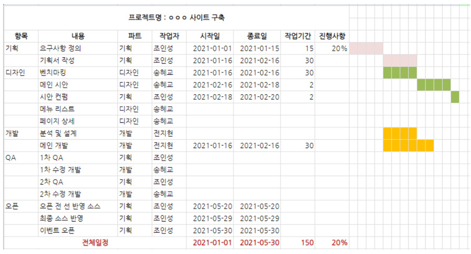 PM뿐 아니라 프로젝트에 참여하는 모든 사람이 이 일정을 알고 준수해야 한다.