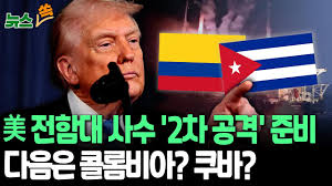 - 주요 명분: 마약 테러리즘(Narco-terrorism). 트럼프는 페트로 대통령을 "코카인 공장을 운영하는 병든 사람"이라 비난하며, 미국으로 유입되는 마약의 근원을 차단해야 한다고 주장합니다.